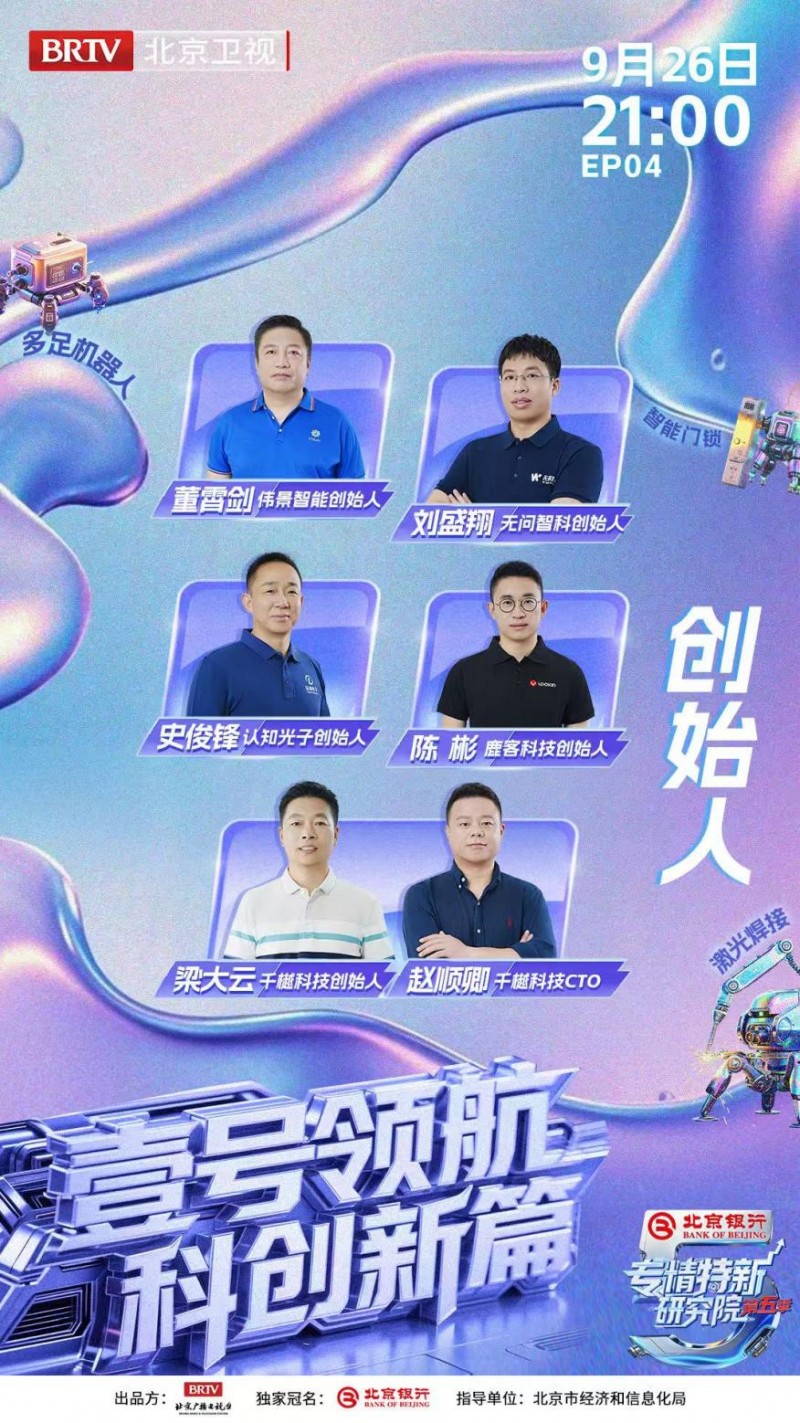 由北京银行独家冠名的《专精特新研究院》第五季持续热播,收获广泛关注。9月26日(周五)晚21:00,节目第四期将聚焦科创前沿,探访团走进中关村壹号,开启关于AI智能科技的深度对话。