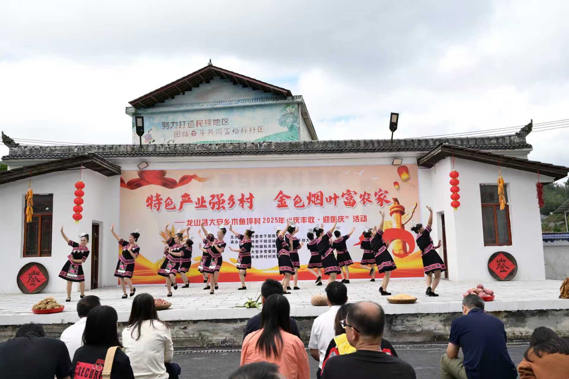 活动现场对全村产业发展带头人进行了隆重表彰,向17户产业发展带头人颁发了荣誉证书,充分肯定了他们带动村民增收、发展特色产业的示范引领作用。随后的文艺汇演环节,村民们和州老干部大学学员及州委老干部局系统、大安乡政府的干部职工用自编自演的舞蹈、合唱独唱、电吹管联奏等节目,深情表达了对美好生活的赞美与对祖国繁荣昌盛的祝福。