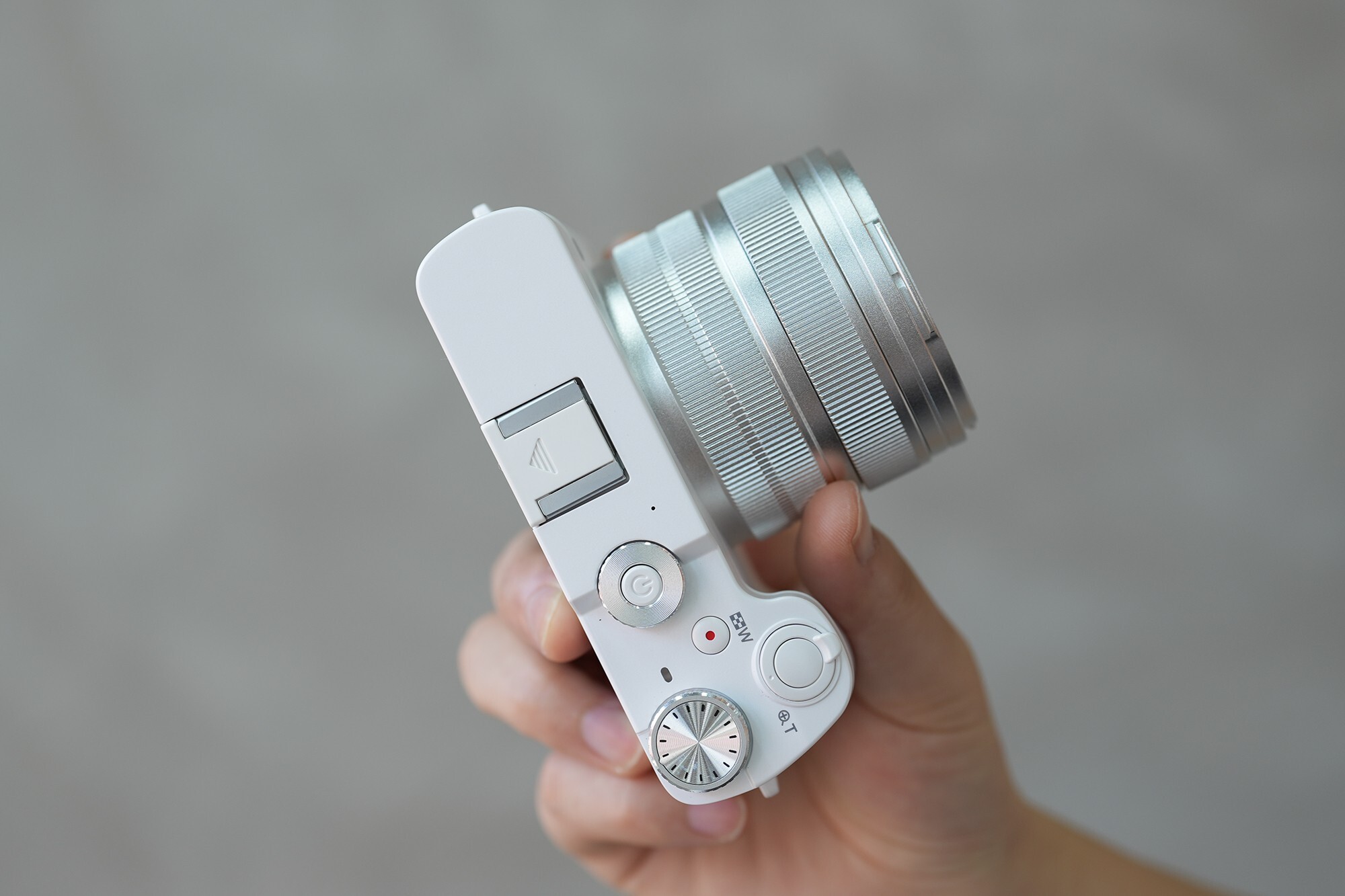 机身顶部的设计同样十分紧凑,从左到右依次为电源键、视频按键、快门键、模式切换拨盘。相比手机,快门键的加入让拍照更加灵活,大面积的接触面让拍照更加舒适。