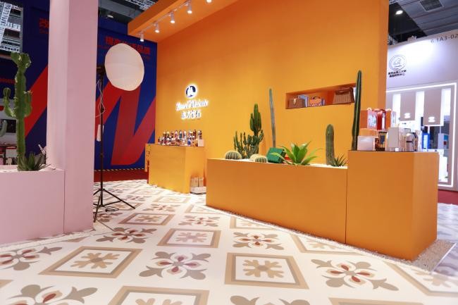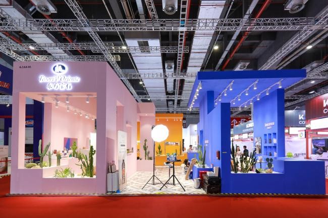 本届进博会展台设计上,东方宝石以水粉、清橙与深蓝三大色彩分区,结合植物元素,打造出兼具艺术氛围与自然气息的香氛空间。观众穿行其中,不仅能够感受视觉与嗅觉的双重沉浸,也能体会到品牌“从自然中提炼产品”的核心理念,完成一场身心放松的寻香之旅。