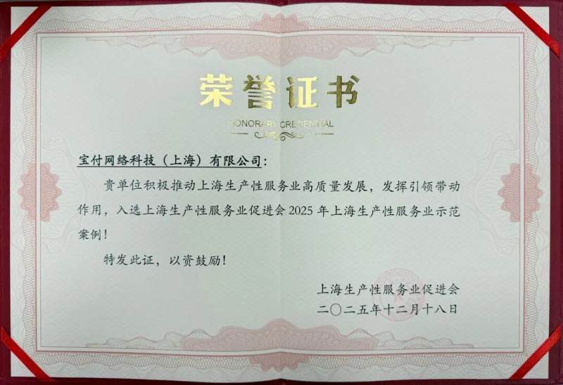 作为上海服务型经济的核心支柱,生产性服务业是赋能制造业提质增效、助推产业转型升级的关键力量,其发展水平直接关系到区域产业竞争力的提升。此次2025年上海生产性服务业示范案例评选,由上海生产性服务业促进会牵头开展,全程遵循严格的征集、多轮审核与层层遴选流程,旨在筛选出行业内具有标杆意义的优秀企业与实践案例,推广先进发展经验,引领全行业高质量发展。宝付支付能够从众多参评企业中脱颖而出成功入选,充分印证了宝付支付在生产性服务业领域的深厚积淀与过硬服务能级,更凸显了宝付支付以支付科技赋能产业发展的硬核实力。