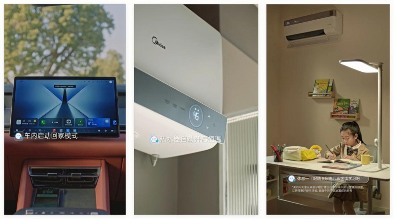 比如,用户在车辆驶入小区时喊出“小美小美,我们到家了”,便能即刻启动回家模式,通过“人·车·家”联动,家中的热水器提前开启,窗帘自动关闭,空调打开制暖模式,让用户推开家门,就能享受到舒适。在冬季沐浴场景中,用户只需告诉小美“我要洗澡了”,热水器开始自动调温、卧室的暖风自动开启,出浴室即可无缝衔接进被窝;在学习场景中,只需喊出“小美小美,孩子要写作业了”,书桌旁的大路灯入座即亮,空调自动进入无风感模式,还会提醒孩子注意劳逸结合,让新手父母也能轻松带娃。