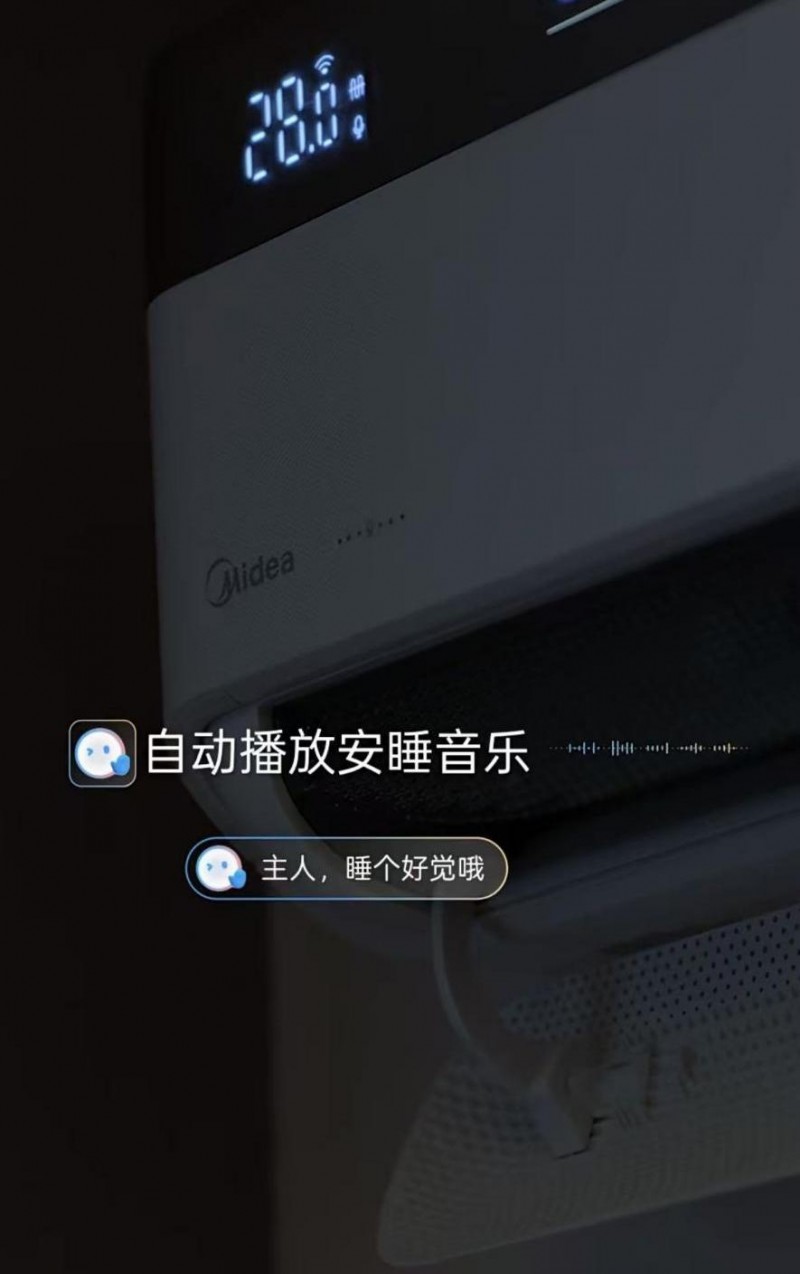 只需在睡前轻拍床头的小夜灯即可进入“拍拍安睡”模式——主灯缓缓熄灭,空调自动调节至适宜的温度与风速,空气净化器、加湿器等设备也同步开启。更令人惊喜的是,“会唱歌的空调”还会播放助眠音乐,轻柔的旋律帮助你放松身心,快速进入梦乡。