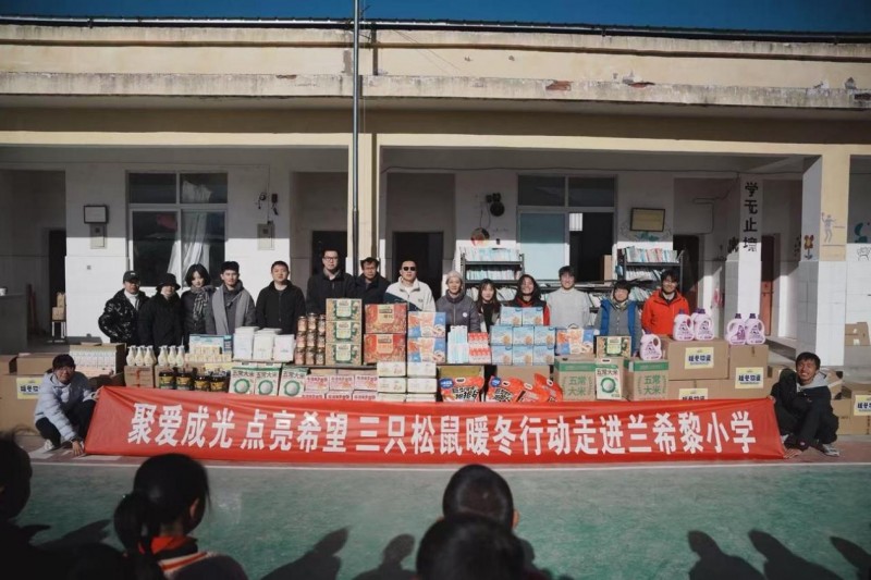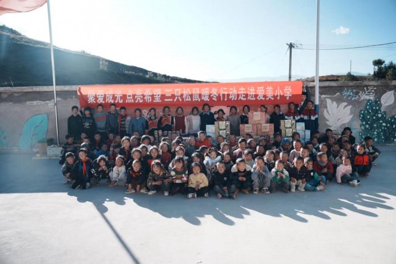 2025年11月彝族新年期间,三只松鼠公益小队深入海拔2000多米的大凉山彝族村落,启动年度“暖冬行动”,为当地多所学校的数百名孩子送去包含坚果零食、文具、洗护用品、益智玩具在内的暖冬礼包。