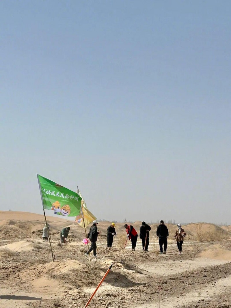 2025年3月植树节期间,三只松鼠公益团队远赴甘肃民勤——中国四大沙尘暴策源地之一,开展沙漠植树行动,在戈壁滩亲手栽种梭梭树5000余株,为西北防风固沙、生态修复贡献实实在在的力量。