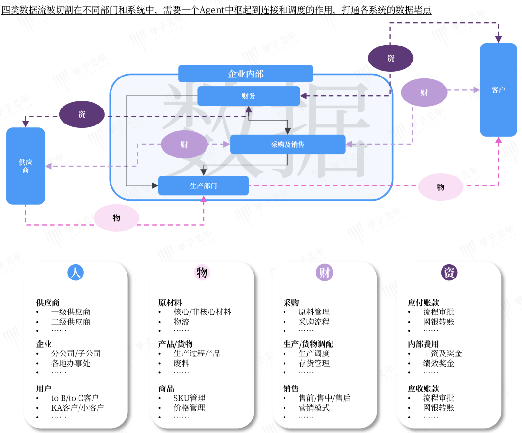 Agent可作为企业数字化系统的智能中枢,连接和调度各子系统,盘活企业数字资产