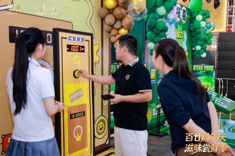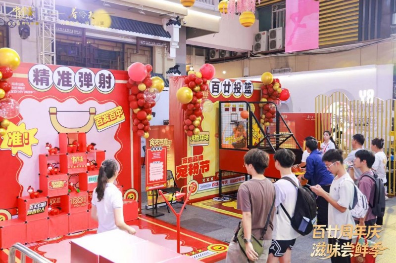 “本来只是来逛街拍照的,没想到还能玩游戏、拿礼品、品吸新品,真的太惊喜了!”一位正在排队参与“百廿投篮”游戏的年轻男孩兴奋地说道。