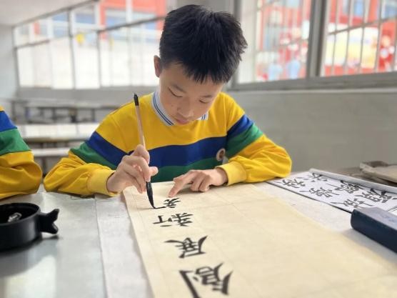 食堂大厅内,书画比赛如火如荼。毛笔、硬笔、绘画、手工……同学们挥毫泼墨、妙笔生花,一幅幅作品或遒劲有力,或清新雅致,充分展现了学校艺术教育的丰硕成果。