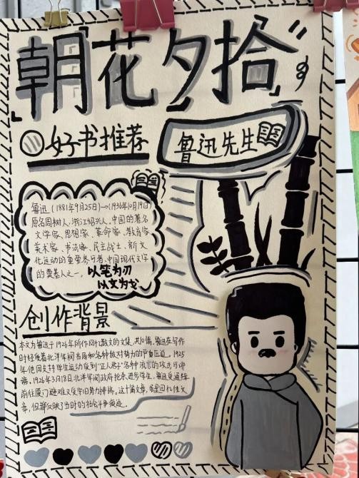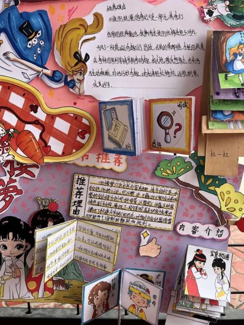 一年级亲子共读视频,温馨有爱;二年级识字小报,创意无限;三年级手抄报,图文并茂;四年级创意书签,精巧别致;五年级读书笔记、思维导图,逻辑清晰;六年级好书推荐卡,感人至深;七八年级学生积极撰写读后感,一篇篇征文情感真挚、见解独到。
