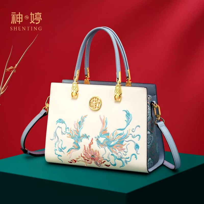 神婷的品牌特色,总结起来就八个字:中式审美,匠心手作。中式审美,不是简单地贴个龙凤呈祥的图案。神婷以中华民族传统文化为轴心,打造出迥异于当前市场主流形态的产品。它不跟风欧美大牌的设计语言,也不刻意卖萌装嫩。它的包有一种“安静的力量”,你不会第一眼被它吓到,但越看越耐看。
