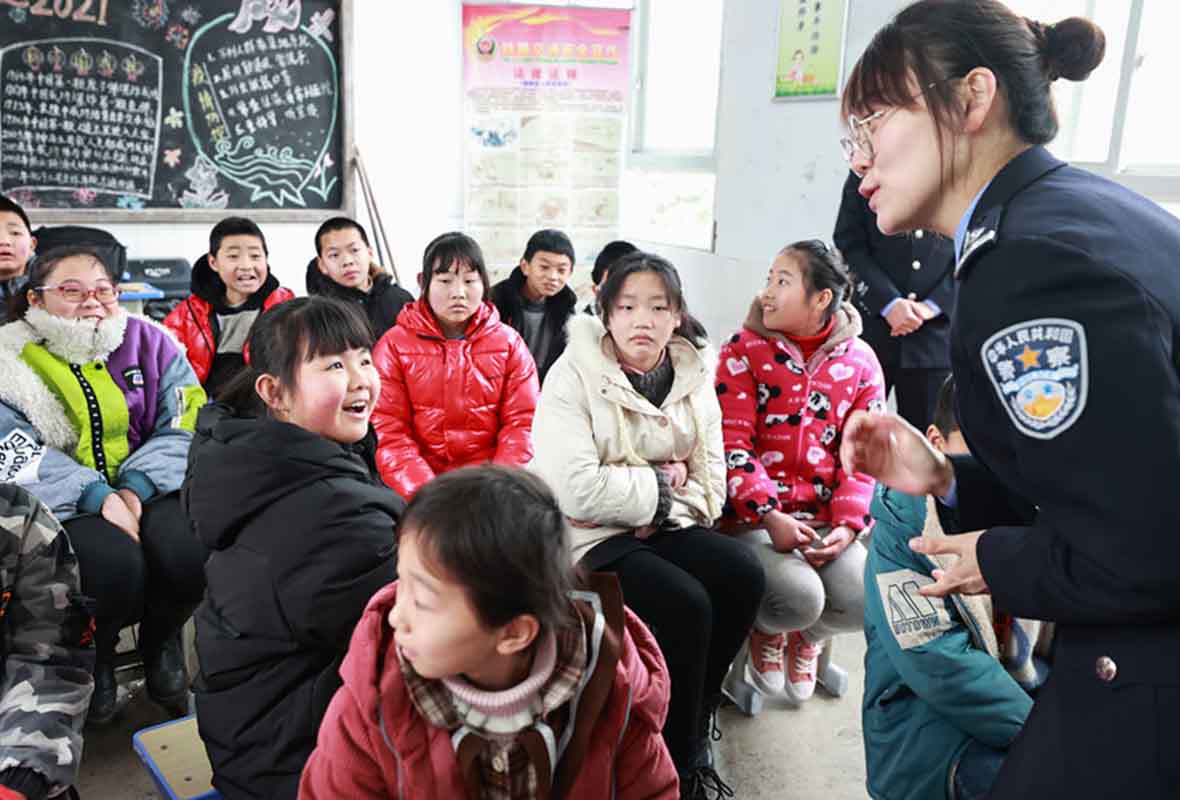 2月22日,民警在课堂上和学生开展互动。胡勇 摄