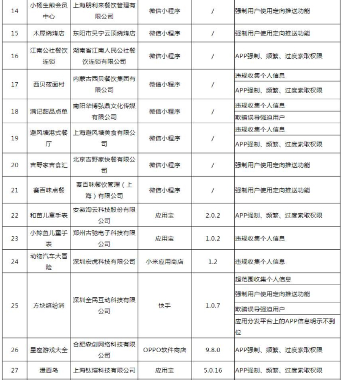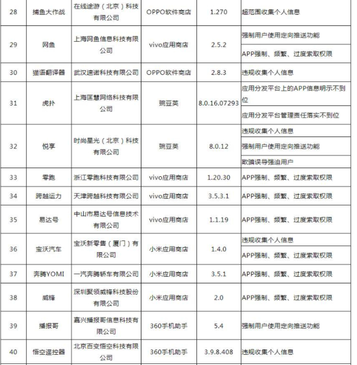 关于侵害用户权益行为的APP通报