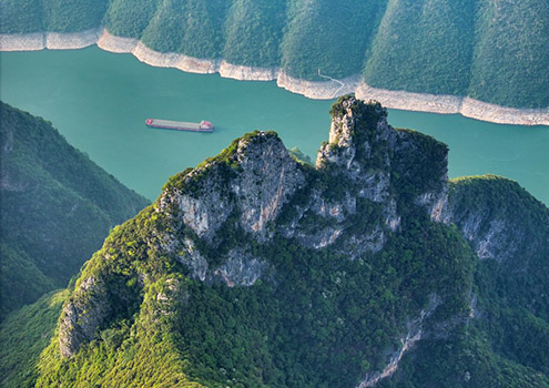 人民网重庆6月1日电(记者 刘政宁)初夏时节,长江巫峡段两岸绿意葱茏,江面上船来船往。在阳光的照耀下,长江水面上波光粼粼,与一旁起伏的山峰相映成景,宛若一幅山水画。