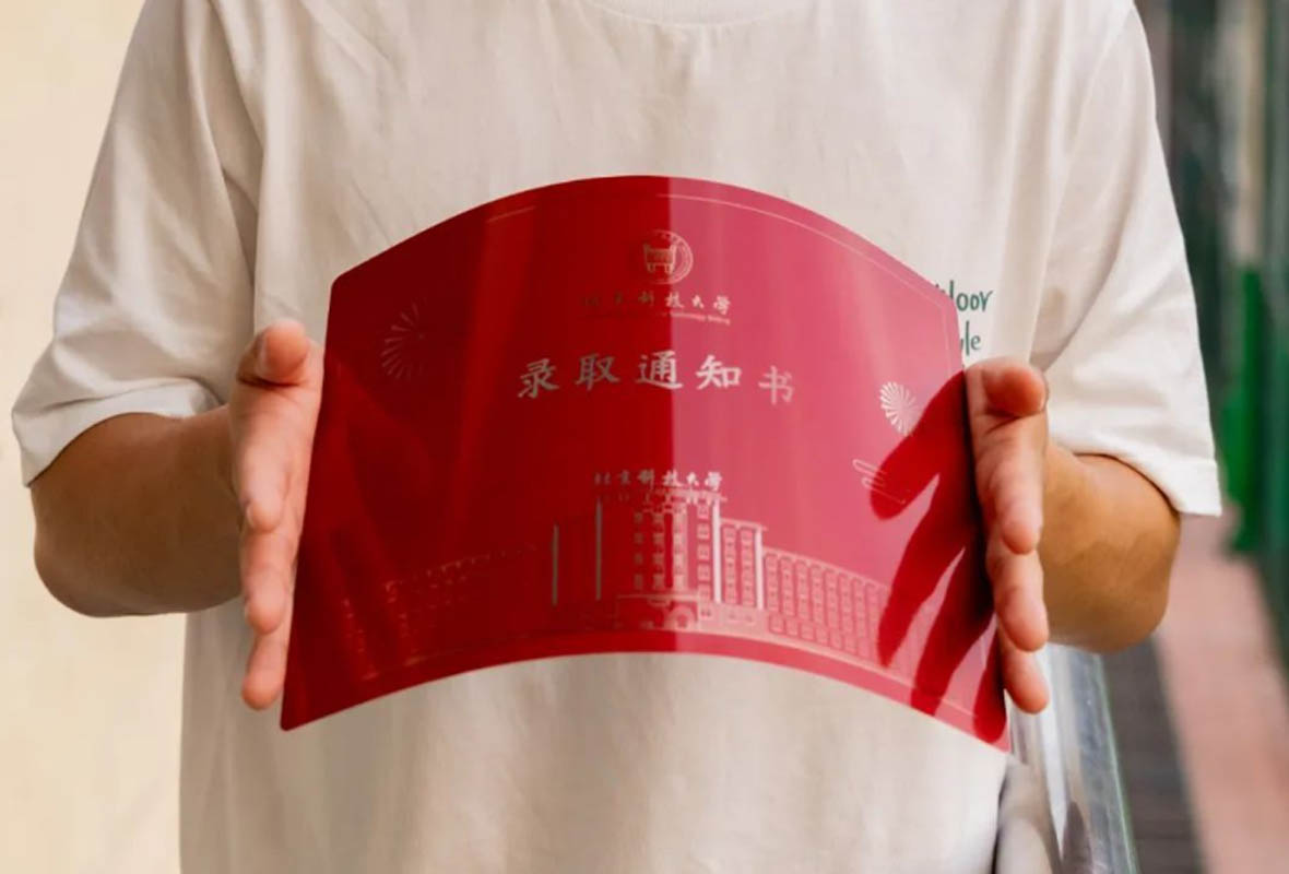 今天,北京科技大学全新改版的本科生录取通知书惊艳亮相:以钢为纸!