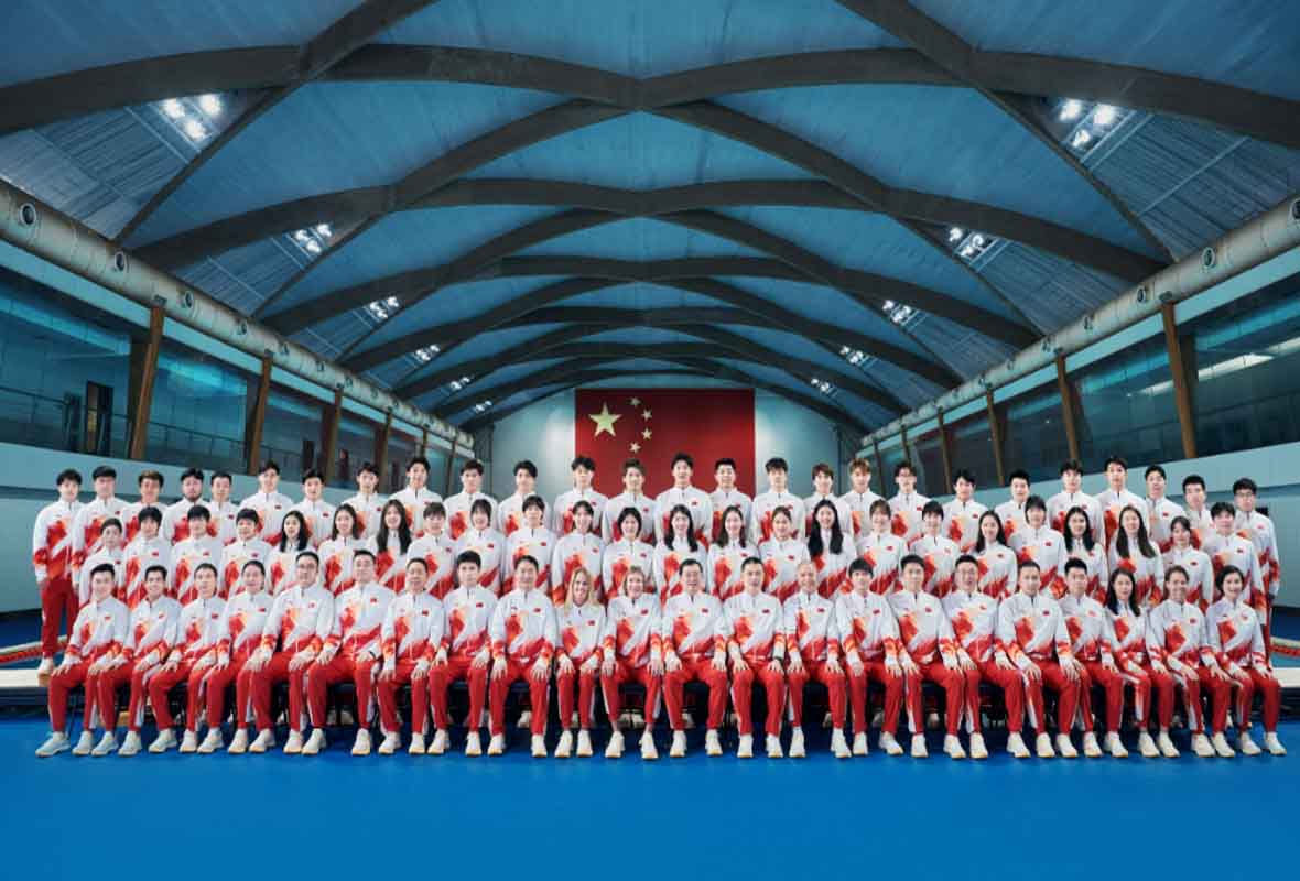 2023年游泳世锦赛将于7月14日在日本福冈开幕,7日,中国游泳队、中国跳水队和中国花样游泳队发布出征前全家福。