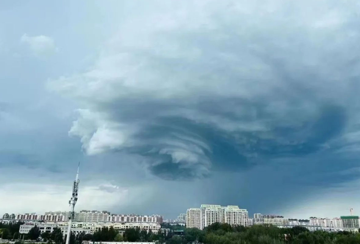 7月6日14时左右,内蒙古自治区通辽市科尔沁区上空出现超级单体风暴。该系统作为对流风暴的一种,是局地对流风暴发展最猛烈的形式。其特点是具备一个持久深厚的中气旋,常伴有雷电、冰雹、大风、短时强降水等天气的发生。网友表示看起来仿佛开启了平行时空之门。