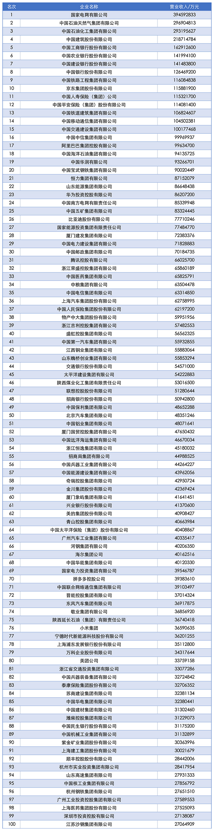 规模总量保持增长。企业500强营业收入达110.15万亿元,较上年500强有所增加。入围门槛实现23连升,达479.60亿元,提升5.79亿元。资产总额为460.85万亿元,增长7.46%。榜单中,千亿规模企业数量增至267家,比上年增加45家,有15家企业的营业收入超过万亿元。其中,国家电网营业收入超过3万亿元,即将突破4万亿元;中国石油、中国石化、中国建筑的营业收入超过2万亿元。
