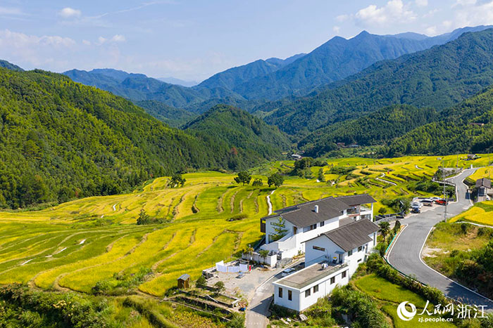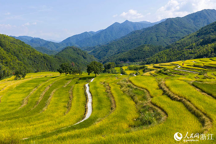 浙江省龙泉市各地田间地头,沉甸甸的稻穗随风起伏,翻涌成金色浪涛。人民网 章勇涛摄