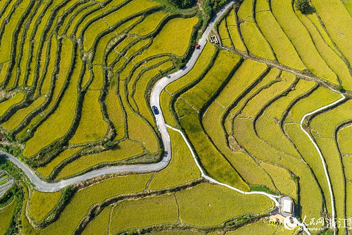 浙江省龙泉市鿎石街道李山头村的千亩稻田一片金黄,构成一幅生机勃勃的“丰”景画卷。人民网 章勇涛摄