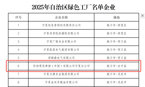 近日,华润雪花啤酒(中国)有限公司宁夏分公司(以下简称“雪花啤酒宁夏工厂”)凭借其在绿色生产、节能减排及可持续发展方面的卓越表现,成功获评2025年度“省级绿色工厂”称号。这一荣誉的获得,不仅是对雪花啤酒宁夏工厂长期以来坚持绿色发展理念的肯定,也为宁夏地区工业高质量发展树立了新的标杆。