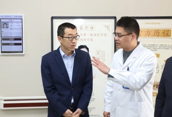 张闯总经理一行先后实地考察了医院体检中心、门诊大厅、急诊医学科、名医堂(中医综合诊区)、血液透析中心、餐厅等区域,了解医院各大板块核心工作进展,特色服务与患者就诊体验,与一线医护人员亲切交流,询问工作中的实际问题与需求。