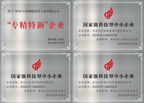 在"制造强国""创新驱动"双重战略引领下,国家高新技术企业与专精特新中小企业已成为产业升级的核心载体。九州集团在“十四五”期间深耕细胞基因产业,搭建三代技术协同平台,建成间充质干细胞、TCR‑T/CAR‑T、诱导多能干细胞(iPSC)技术体系,多款细胞药物并行推进,在专精特新企业认定方面成果斐然,旗下三家子公司凭借科技创新实力获评“国家级科技型中小企业”,一家企业以专业化、精细化等优势被评为专精特新企业,成为行业标杆。2025年11月,又有一家公司凭借高速成长与创新发展,荣获西安市瞪羚企业称号,彰显集团强劲发展动能。这些荣誉是对集团“十四五”坚持创新驱动、聚焦核心业务战略的高度肯定。未来,九州集团将秉持“用生物技术为人类健康服务”的使命,在“十五五”征程中勇毅前行,积极从瞪羚向独角兽企业迈进。