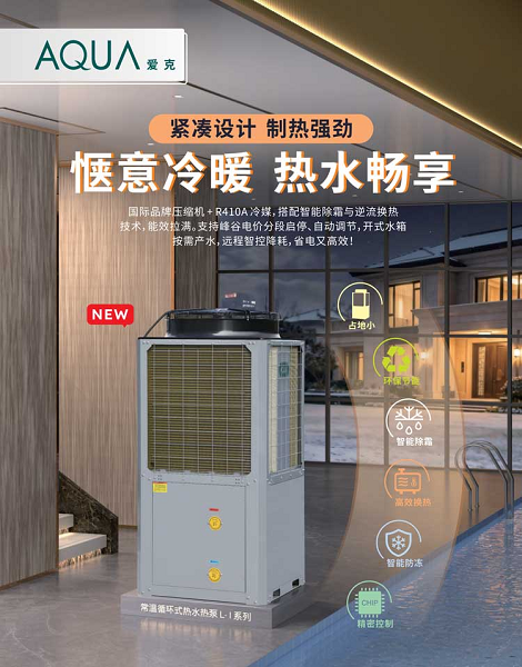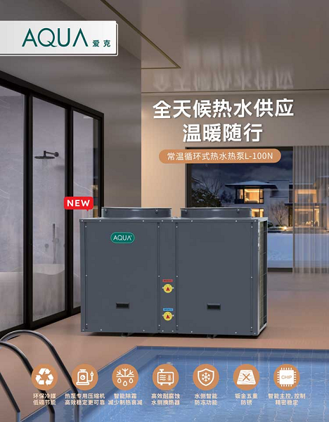 基于此,长期深耕热泵领域的AQUA爱克空气源热泵厂,依托强大的工程研发实力与对市场需求的精准洞察,正式推出常温循环式热水热泵L-100N、L-I系列及常温泳池恒温热泵B-I系列三款新品,以技术革新破解行业痛点。这些产品通过技术创新直击行业痛点,为不同应用场景提供精准高效的热能支持。