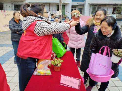 最受家庭欢迎的“玩具新生”环保置换摊位吸引了众多居民参与。居民们带着闲置的玩具来到现场,在志愿者引导下兑换绿植。活动共回收各类玩具36件,发放绿植30盆,既培养了居民的环保意识,也促进了家庭闲置资源的社区内循环。