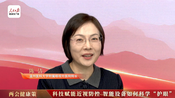 陈洁教授:"国家在‘十五五’期间给中小学生一个希望——希望他们能够‘身上有汗,眼里有光’。如果能做到这一点,我想我们离近视防控的目标就不远了。"
