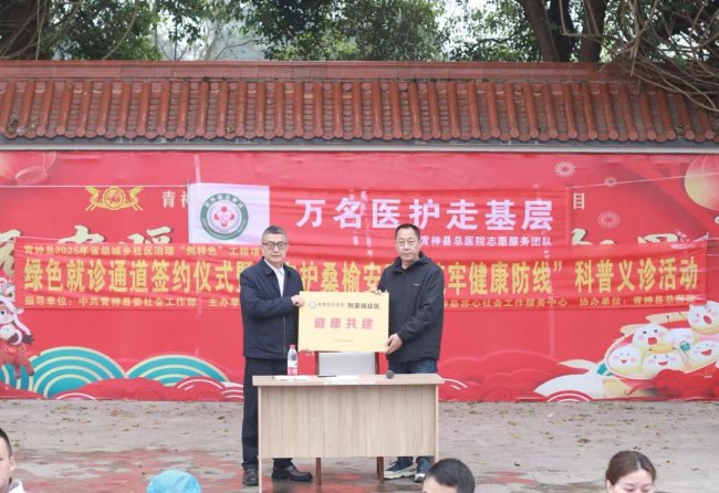 2026年3月25日,由中共青神县委社会工作部指导,刘家场社区居民委员会主办,青神县苏心社会工作服务中心承办,青神县总医院协办的“和乐银龄家之健康守护服务活动(三)——绿色就诊通道签约仪式暨‘守护桑榆安康,筑牢健康防线’科普义诊活动”在刘家场社区党群服务中心顺利举行。本次活动旨在破解老年人“看病难、排队久、应急慢”的痛点,通过“科普+义诊+签约”的模式,切实提升辖区老年人的获得感与幸福感。