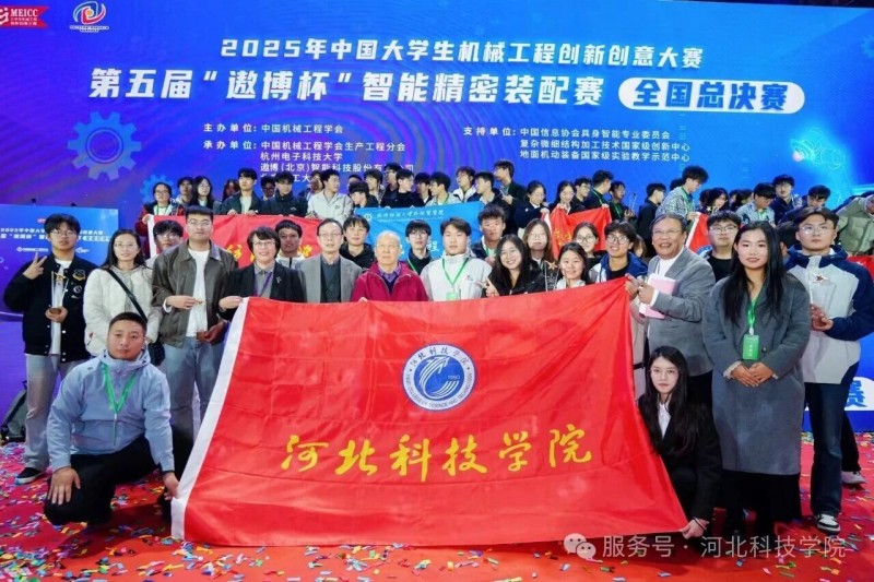2025年11月22日,2025中国大学生机械工程创新创意大赛——智能精密装配赛全国总决赛在杭州电子科技大学圆满落幕。本次大赛作为机械工程领域的国家级权威赛事,共吸引全国9大区域790支队伍、近4000名学子同台竞技,清华大学、重庆大学、北京理工大学等知名高校均派队参赛。经过激烈角逐,河北科技学院派出的五支晋级队伍全部荣获全国一等奖,获奖等级与数量均实现历史性突破,充分彰显了学校在应用型人才培养方面的扎实成效。