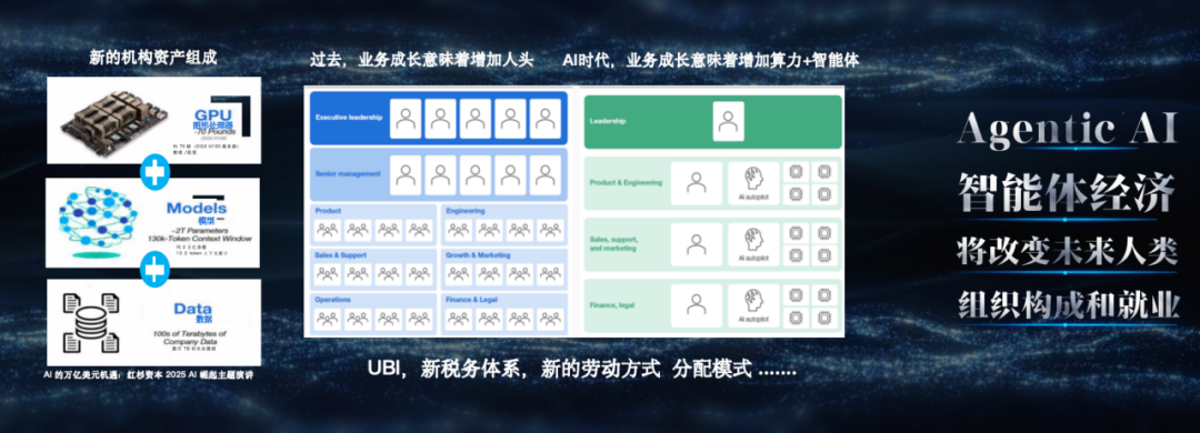 这种智能体经济将彻底改变经济形态、人类组织架构和企业运作模式:企业的核心资产将变为芯片、数据中心、数据和AI模型;团队组建不再局限于招聘人类员工,智能体将成为重要组成部分;就业形态、分配模式等深层次社会问题也将随之重构。